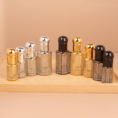 Boş sekizgen arap Attar Oud parfüm cam şişeler uçucu yağ 3ml 6ml şişeler üzerinde rulo cam sopa ile